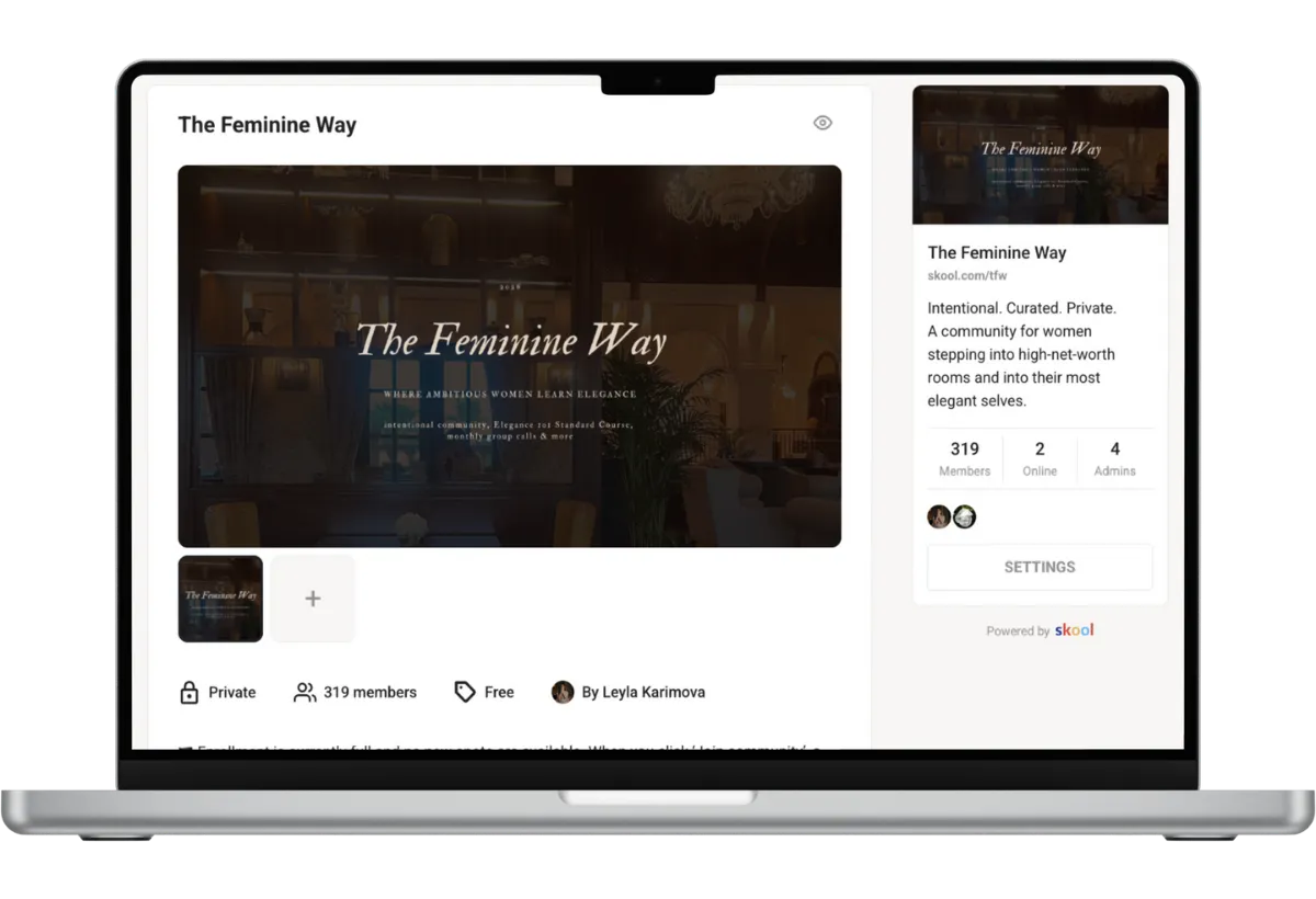 Stay inside the Skool group and connect with like-minded women.